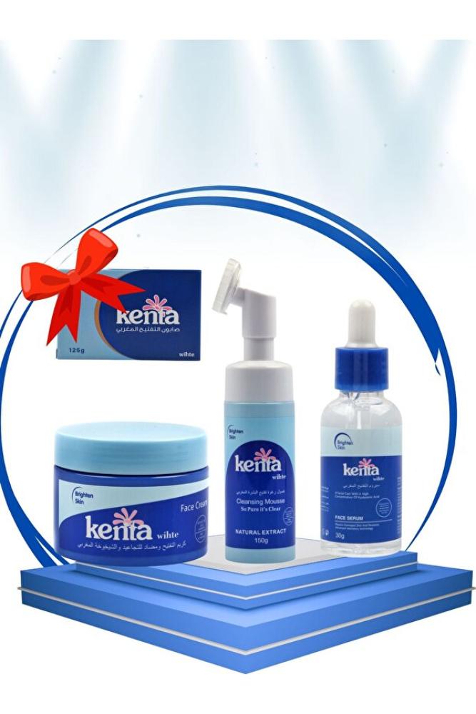 Kenta تحتوي مجموعة كينتا المغربية لتفتيح البشرة على: سيروم لوشن، كريم للتجاعيد، وصابون كينتا هدية.